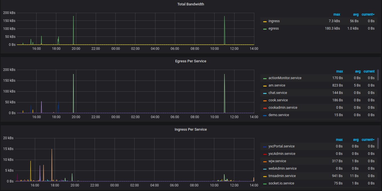 每秒请求的字节数,Ingress:下行带宽,Egress:上行带宽
