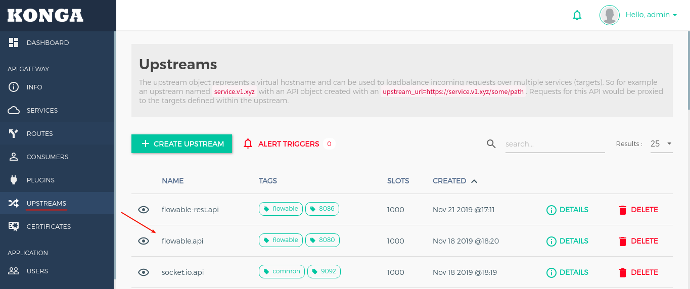 - 搭建专门用于灰度发布的Kong的实例(布署在192.168.1.6),和生产的Kong实例的区别为upstream只配置灰度的target(H区节点,长期有效)