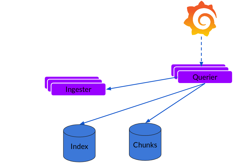 读取就非常简单了,由Querier负责给定一个时间范围和标签选择器,Querier查看索引以确定哪些块匹配,并通过greps将结果显示出来。它还从Ingester获取尚未刷新的最新数据。
