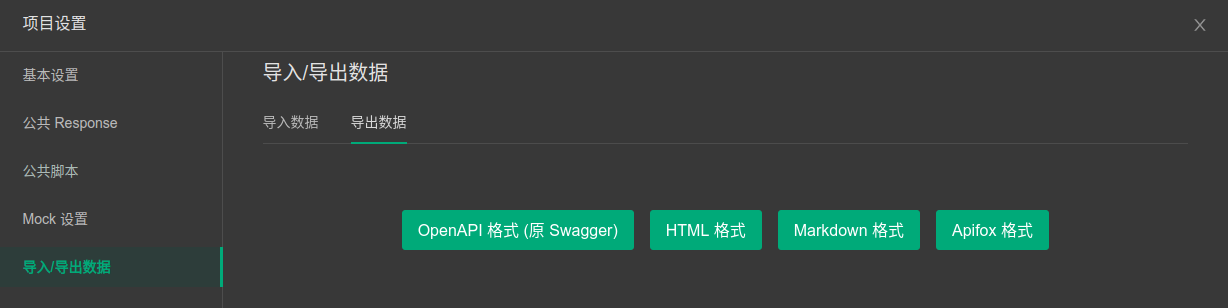 到这里接口信息应该没有什么问题了,可以发布了,项目设置->导入/导出数据->导出数据,选择HTML格式。