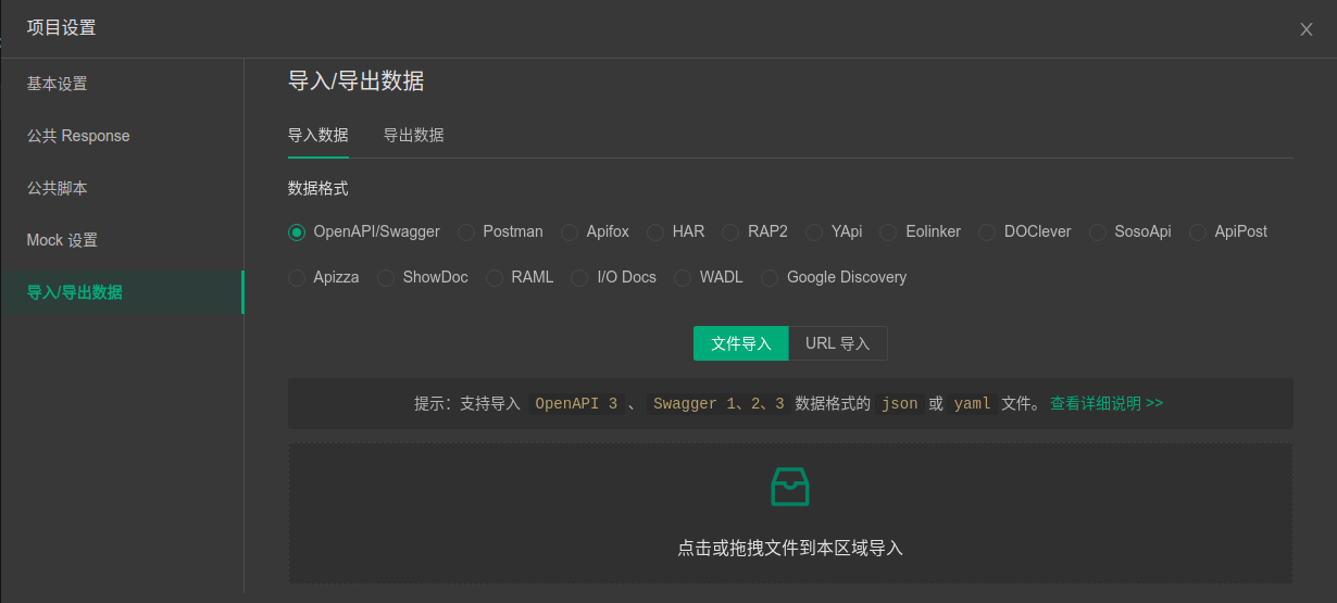 如果你已经用了其他的接口管理平台,比如postman、yapi等等,支持的格式非常多,你可以非常方便的通过导入功能完成迁移。大家可以根据自己的实际情况尝试一下。