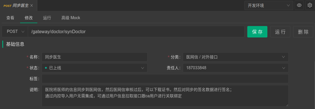 运行前需要做一个工作就是环境变量的设置,这个设置在Apifox中单独做为url的一部分被强化了,在postman中不是必须的。具体怎么配置不具体讲了,和postman没有区别。