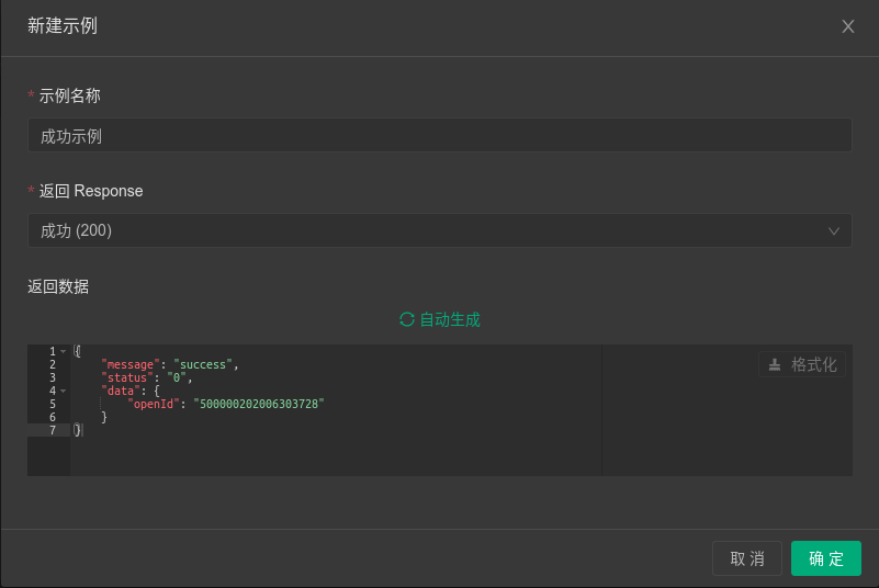 这里是返回值的示例,可以添加成功示例,也可以添加异常示例。
