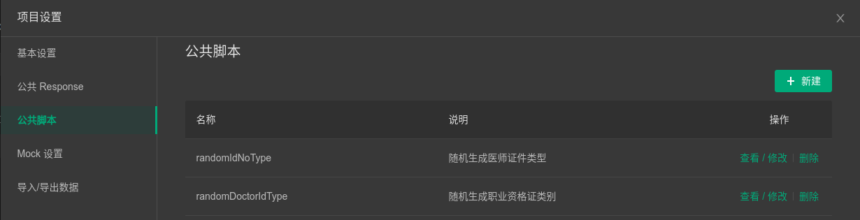 创建成功后,通过项目设置页面,进行详细配置,比如修改项目名称,甚至是删除项目。其它设置还包括:公共Response、公共脚本、Mock设置、导入/导出数据,具体后面会介绍。