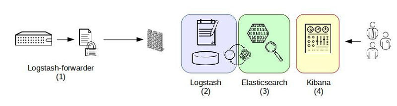 第一种ELK架构,是最简单的一种ELK架构方式。优点是搭建简单,易于上手。缺点是Logstash耗资源较大,运行占用CPU和内存高。另外没有消息队列缓存,存在数据丢失隐患。建议供学习者和小规模集群使用。此架构首先由Logstash分布于各个节点上搜集相关日志、数据,并经过分析、过滤后发送给远端服务器上的Elasticsearch进行存储。Elasticsearch将数据以分片的形式压缩存储并提供多种API供用户查询,操作。用户亦可以更直观的通过配置Kibana Web Portal方便的对日志查询,并根据数据生成报表。